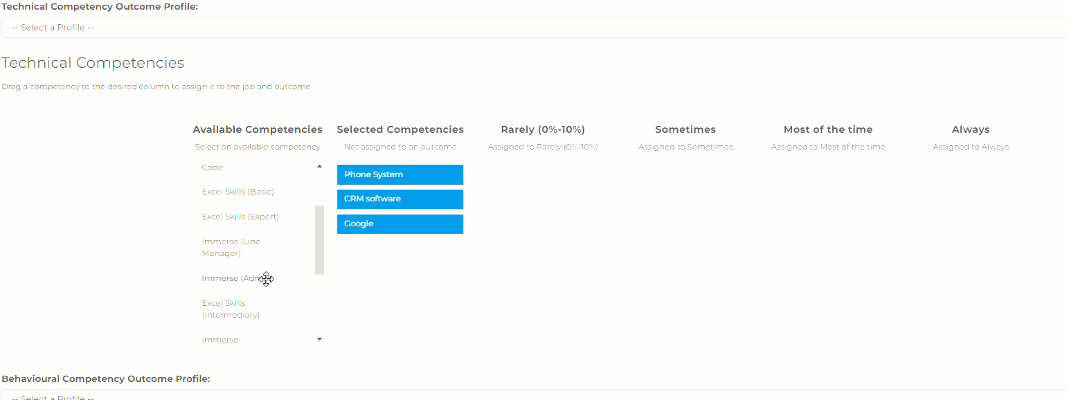 Similarly to the company values, competencies are also graded against outcome profiles. Competencies can also be assigned unique outcomes per job role.